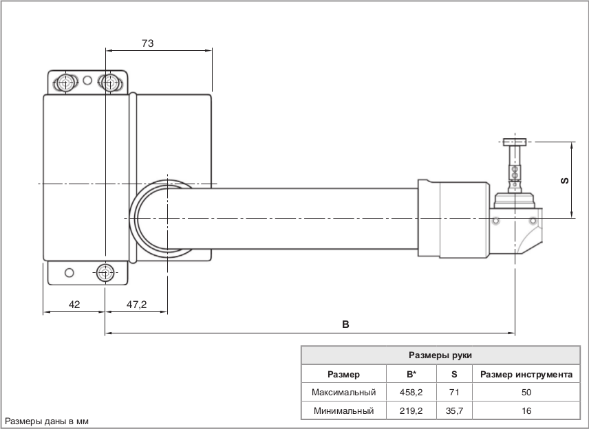 Быстрое срабатывание привода обеспечивает выполнение наладки инструмента и проверку его состояния прямо в процессе обработки, без необходимости вмешательства оператора.Время вывода руки в рабочее положение и ее фиксации по команде управляющей программы составляет не более 2 секунд.